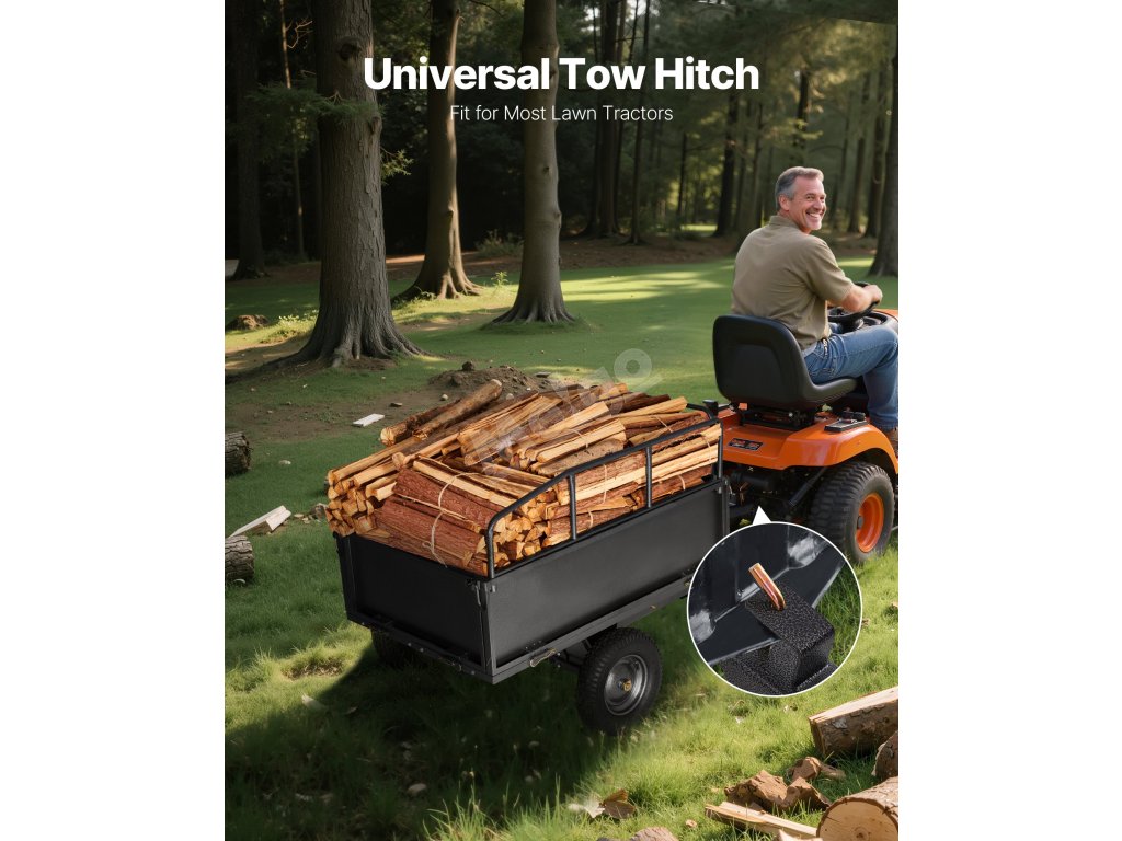 Tento zahradní přívěs s nosností 600 kg je navržen pro práci s různými vozidly včetně traktorů, čtyřkolek, UTV, sekaček a dalších. Ať už jste nadšenec do zahradničení, nebo zemědělec, snadno jej připojíte ke svému vybavení pro bezproblémové převážení.
