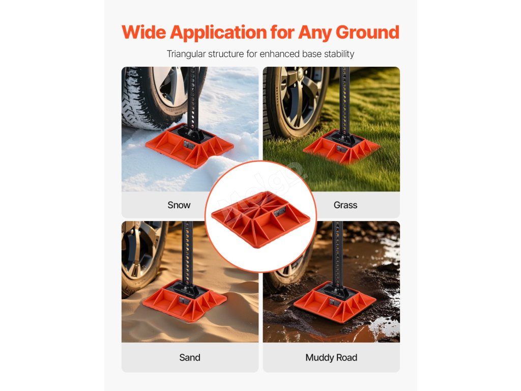 Podstavec pro terénní zvedáky lze použít na písku, štěrku, trávě a jiných měkkých površích a poskytuje lepší základnu pro terénní zvedáky.