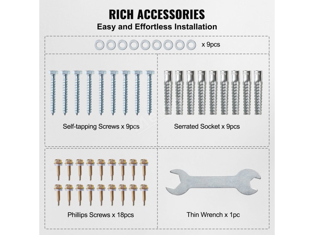 Instalace je snadná díky použití vrtáku a výrobek je dodáván s předem připravenými otvory pro šrouby, což umožňuje snadnou montáž.