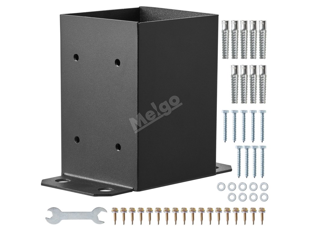 Tyto spojovací prvky jsou vyrobeny z robustní uhlíkové oceli, jsou odolné a nerezaví. Nabízejí stabilní oporu a lze je snadno instalovat na betonové i dřevěné podlahy, takže jsou univerzální pro pevné instalace v konstrukcích, jako jsou pergoly a zábradlí verand.