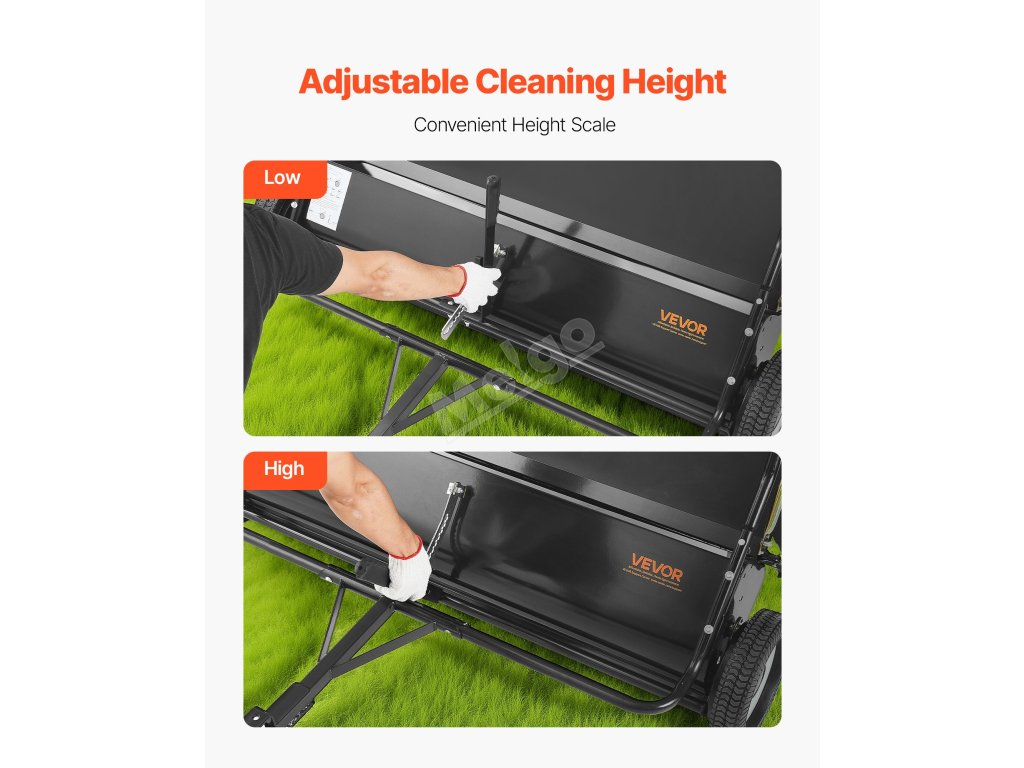 Přední část tohoto taženého zametacího stroje je vybavena ručně nastavitelnou výškou kartáče - není třeba žádné speciální nářadí. Jednoduše nastavte kartáč do ideální vzdálenosti od země pro cílený a účinný sběr listí, posekané trávy, jehličí a dalších nečistot.