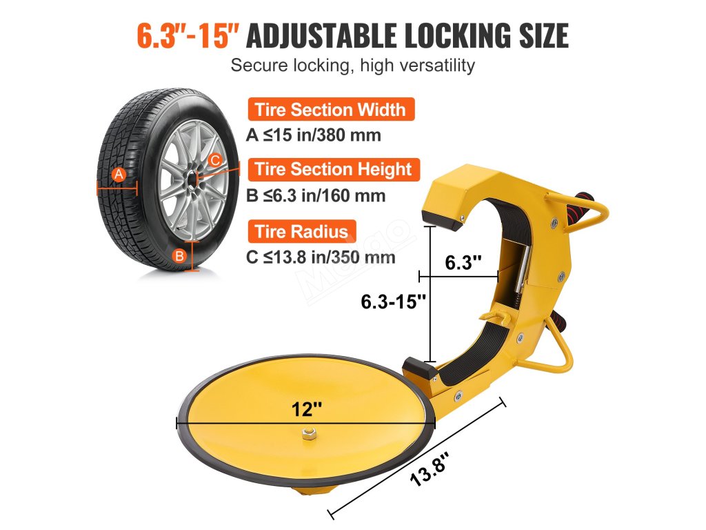Díky nastavitelnému ramenu lze náš zámek pneumatik přívěsu přizpůsobit různým pneumatikám vozidel včetně sedanů, SUV, nákladních automobilů, obytných vozů, golfových vozíků, čtyřkolek a motocyklů.