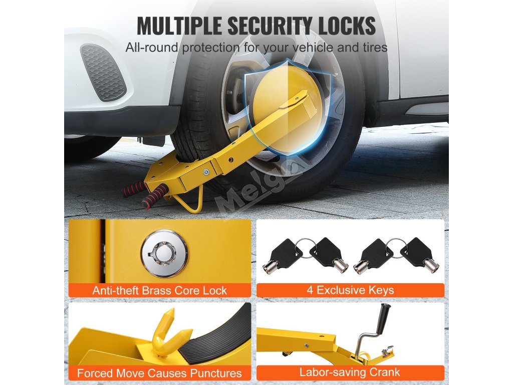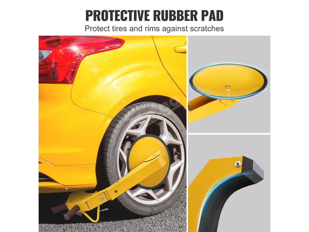 Náš univerzální zámek na kola poskytuje spolehlivou ochranu proti krádeži. Tento zámek kol je vyroben z vysoce kvalitní oceli Q235A a zaručuje maximální odolnost. Gumové polstrování v místech kontaktu chrání vaše vozidlo a jeho pneumatiky před poškrábáním.
