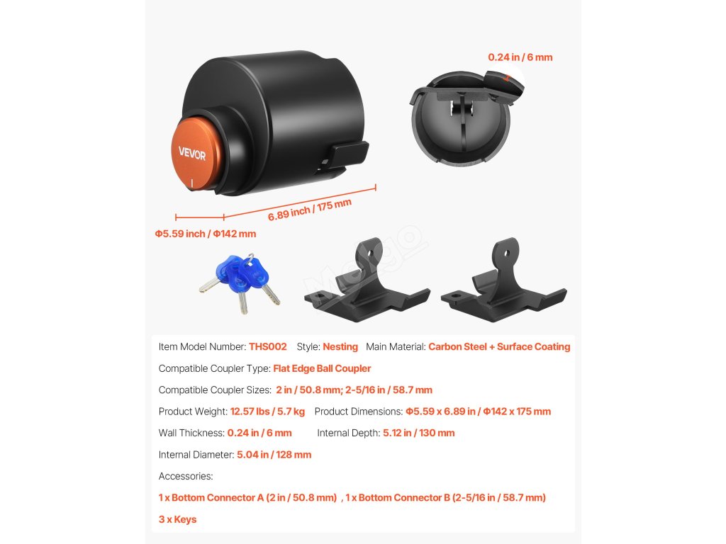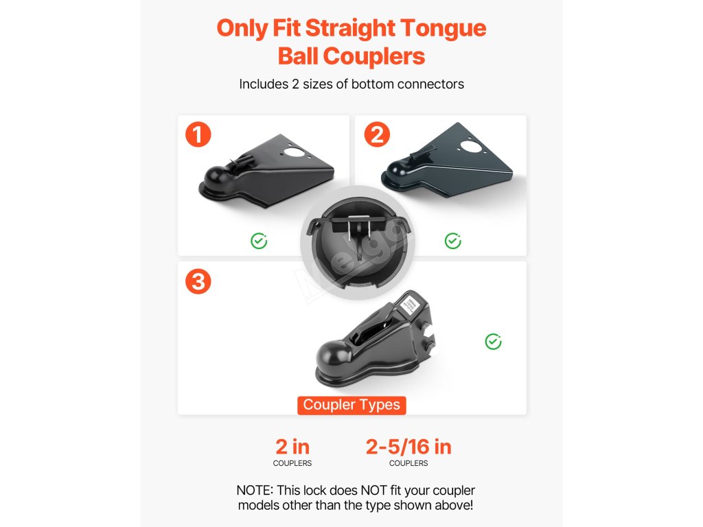 Tento zámek přívěsu je vhodný pro 2 a 2-5/16 palcové kulové spojovací prvky s plochou hranou. Poznámka: Před nákupem si prosím prohlédněte obrázky, abyste se ujistili, že odpovídá vašemu upevňovacímu prvku, a zajistili tak přesné uchycení!