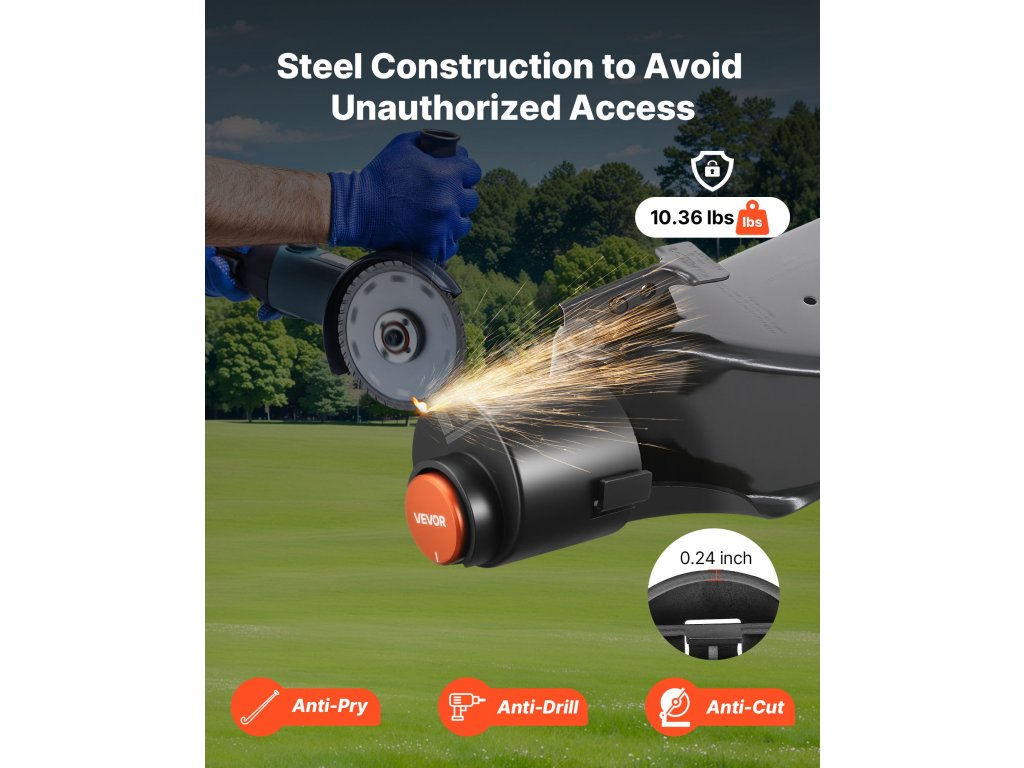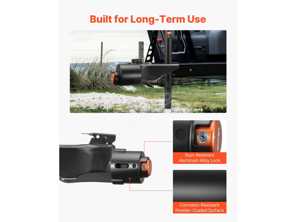 Náš 10,36 kg těžký zámek spojky je vyroben z vysokopevnostní uhlíkové oceli, takže je odolný a bezpečný pro váš přívěs nebo obytný automobil. Zabezpečte své vozidlo před krádeží, když je zaparkované venku!