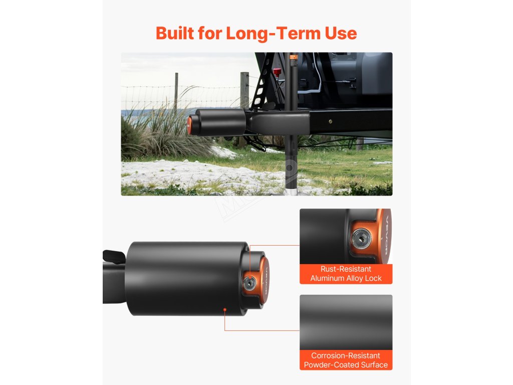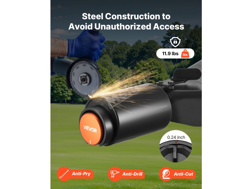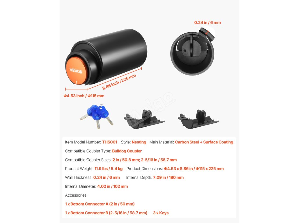 Náš 11,9 kg těžký zámek spojky je vyroben z vysokopevnostní uhlíkové oceli, takže je odolný a bezpečný pro váš přívěs nebo obytný vůz. Zabezpečte své vozidlo před krádeží, když je zaparkované venku!