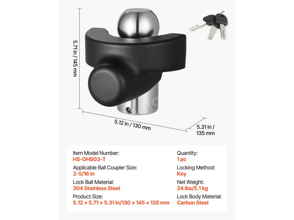 Tento univerzální zámek kulového závěsu je vhodný pro řadu běžných spojovacích prvků. Je vyroben z odolné slitiny s antikorozní povrchovou úpravou a zaručuje dlouhodobou pevnost a odolnost vůči náročným podmínkám. Jeho jedinečná konstrukce proti krádeži zabraňuje vypáčení a nárazům, zatímco jeho jednoduché ovládání usnadňuje zamykání a odemykání.