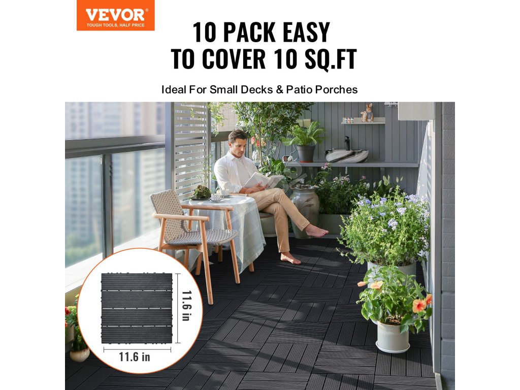Zámkové dlaždice 10 ks 12×12" plastové voděodolné na terasu tmavě šedé
