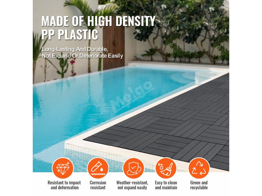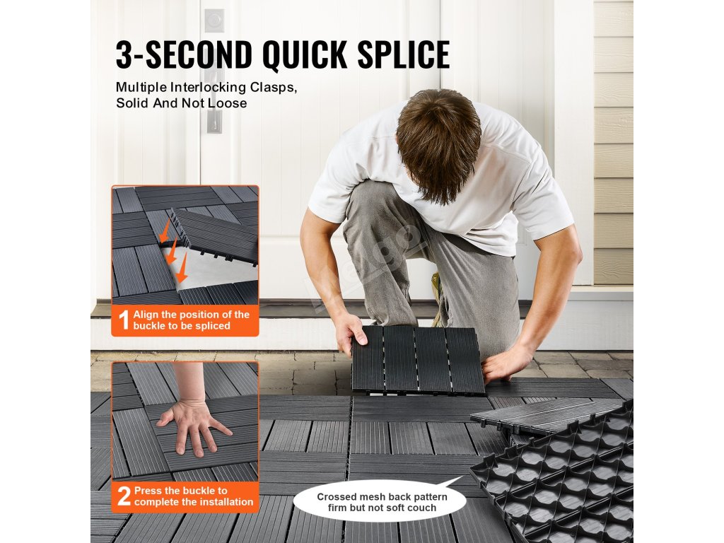 Podkladová mriežka so vzájomným zámkom zvyšuje pevnosť a odolnosť proti nárazom, čím zabezpečuje, že dlaždice odolávajú starnutiu a blednutiu, aj keď sú vystavené vplyvom počasia.