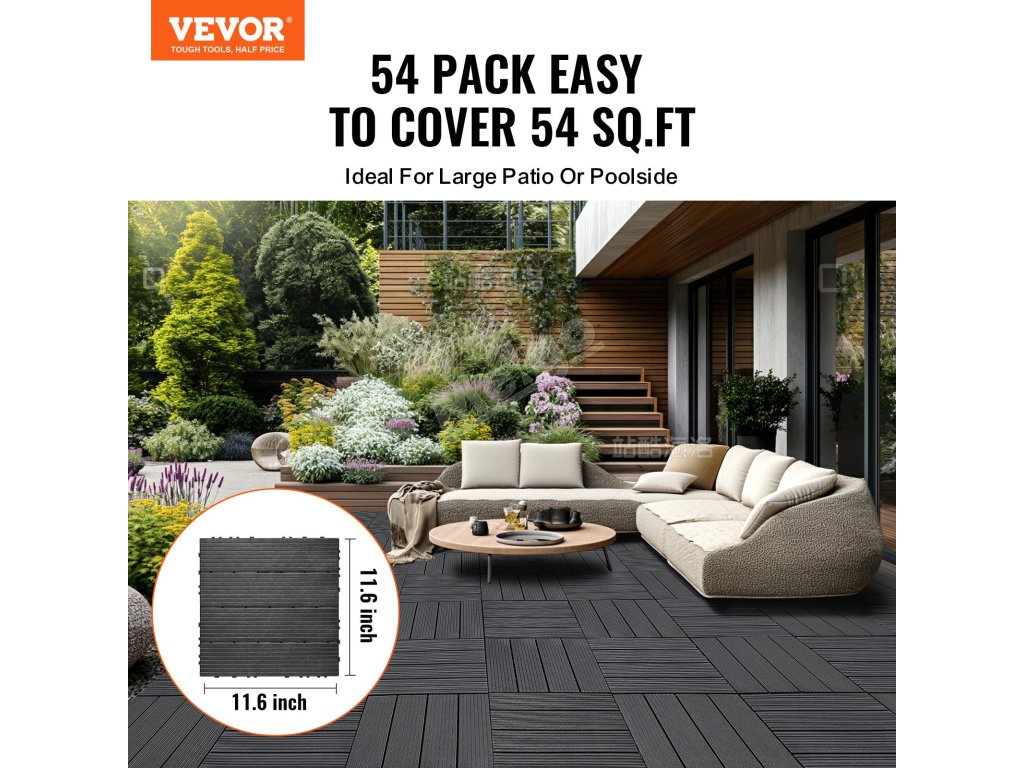 Zámkové dlaždice na terasu 54 ks 12"×12" 54 sq. ft plastové vodotěsné