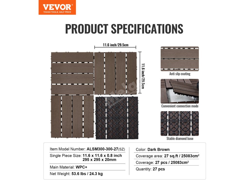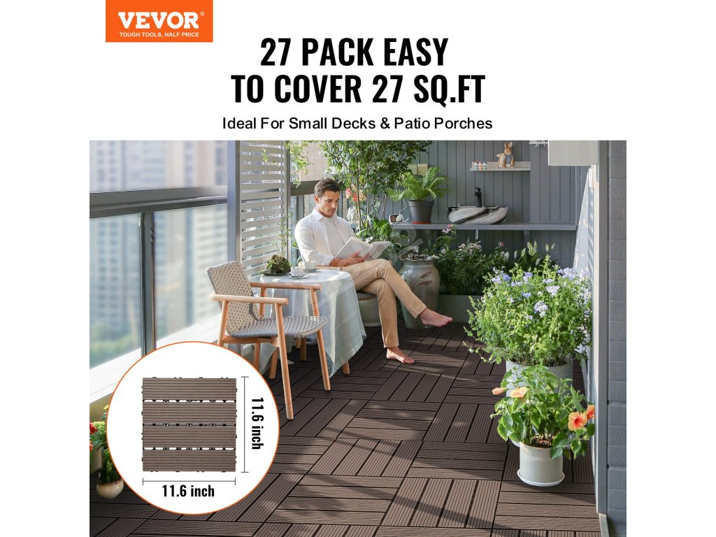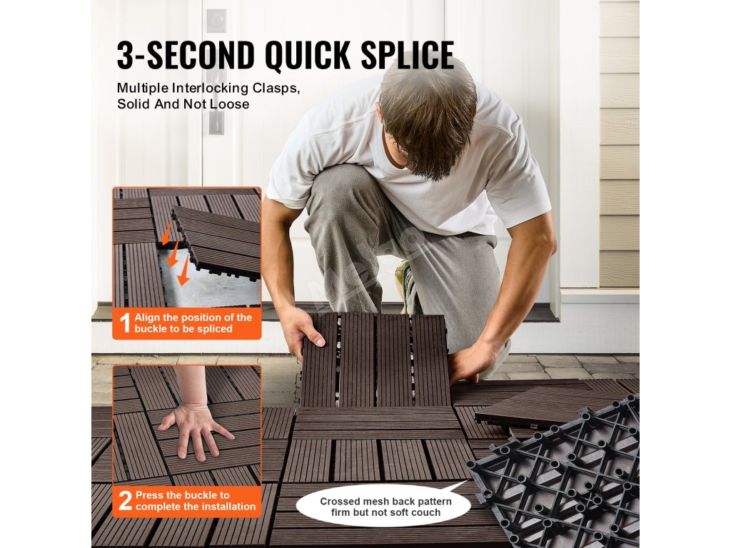 Zámkové dlaždice na terasu plast imitace dřeva 27 ks 12"×12" 27 sq. ft