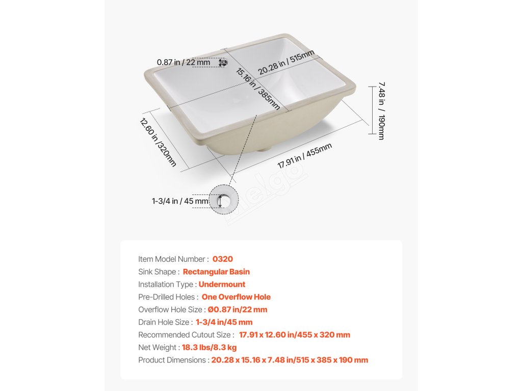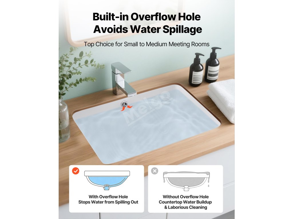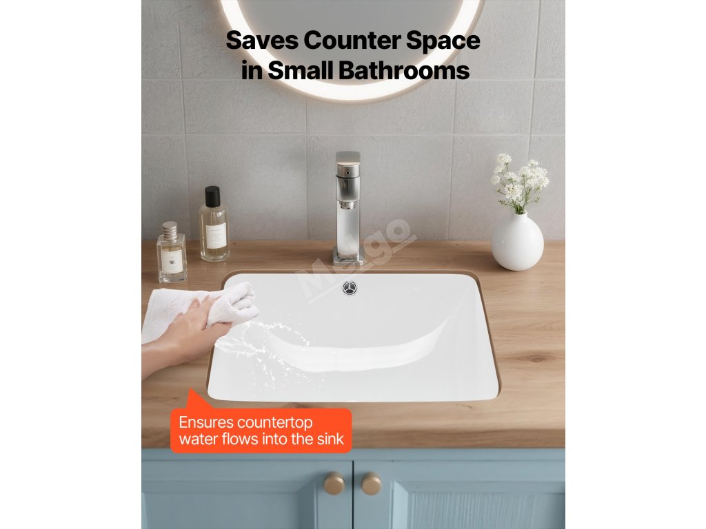Toto zapuštěné koupelnové umyvadlo vyžaduje přesné výřezy pro desku před jejím nastavením. Doporučujeme použít odborné měření a řezání podle skutečných rozměrů umyvadla. Ujistěte se, že jsou okraje bezpečně utěsněny, aby nedošlo k poškození způsobenému prosakováním vody.
