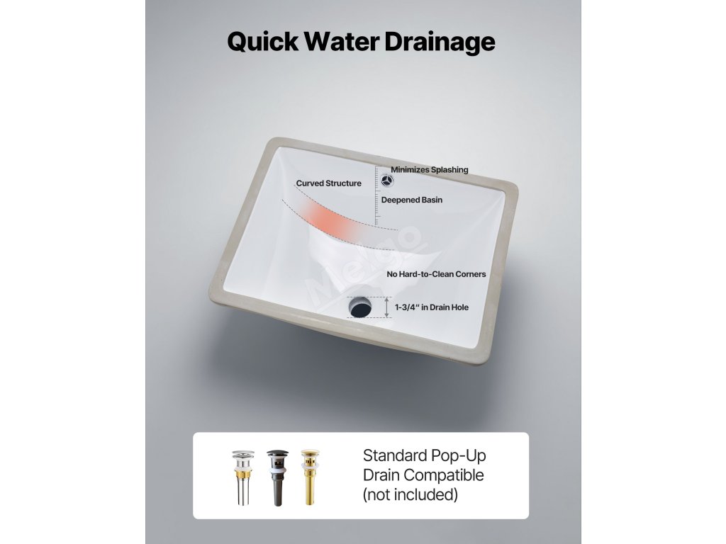 Podomítkové koupelnové umyvadlo se zakřivenou základnou a širokým odtokovým otvorem podporuje plynulý odtok vody bez jejího hromadění. Odolává zápachu a udržuje umyvadlo čisté a suché, takže mytí je pohodlnější a efektivnější.