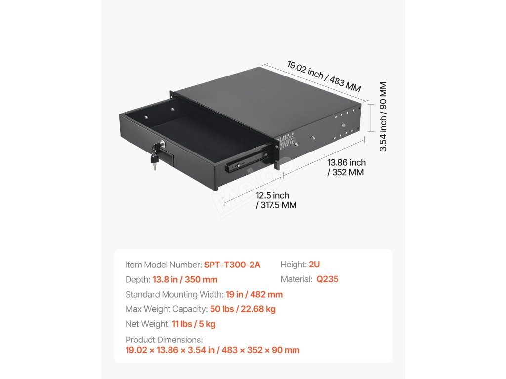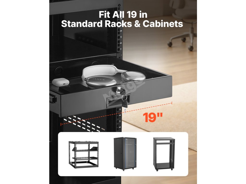 Zásuvka 2U do serverového racku, nosnost 22.68 kg, zamykatelná