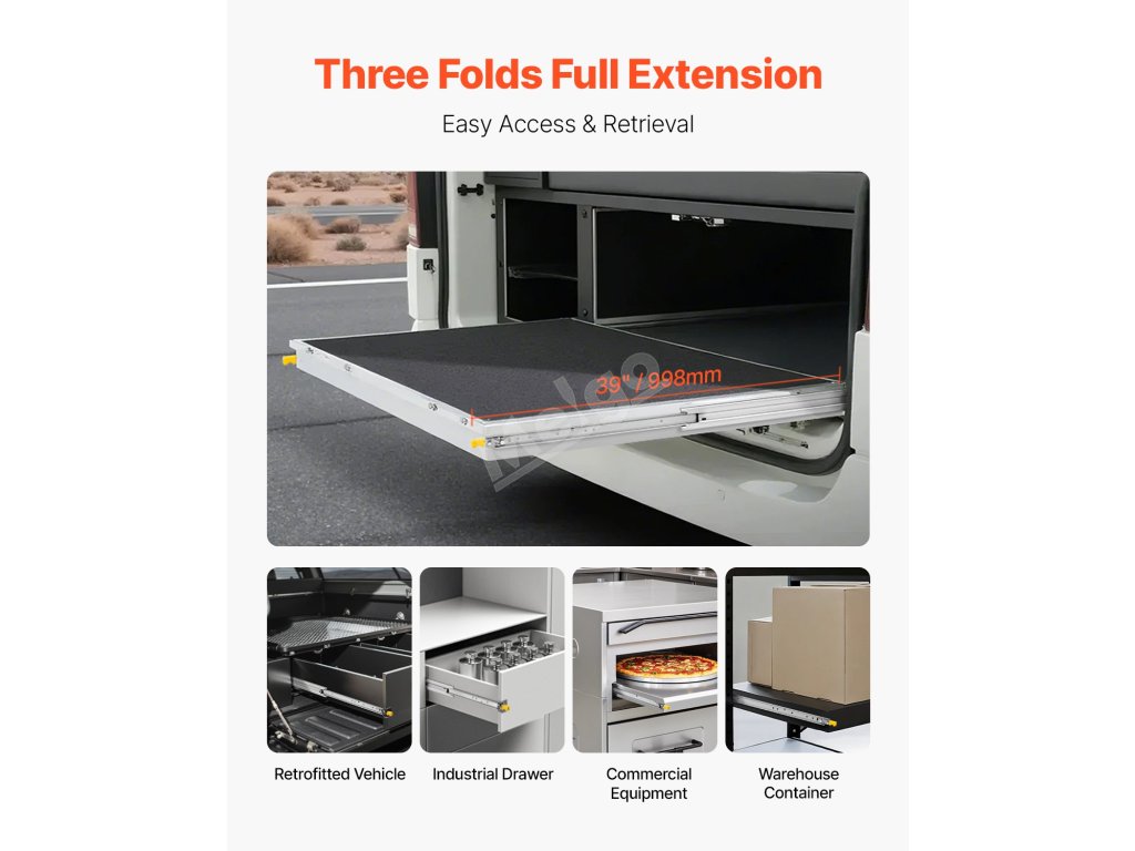 Tyto zásuvkové kolejnice vyrobené z vysoce kvalitní oceli mají vysokou tvrdost, velkou stabilitu a odolnost. Pracují se správným uložením a nízkou hlučností. Jsou dodávány s podrobnými vodítky a praktickými šrouby. Jsou ideální pro ukládání do skříní, průmyslových zásuvek, komerčních zařízení, upravených vozidel atd.