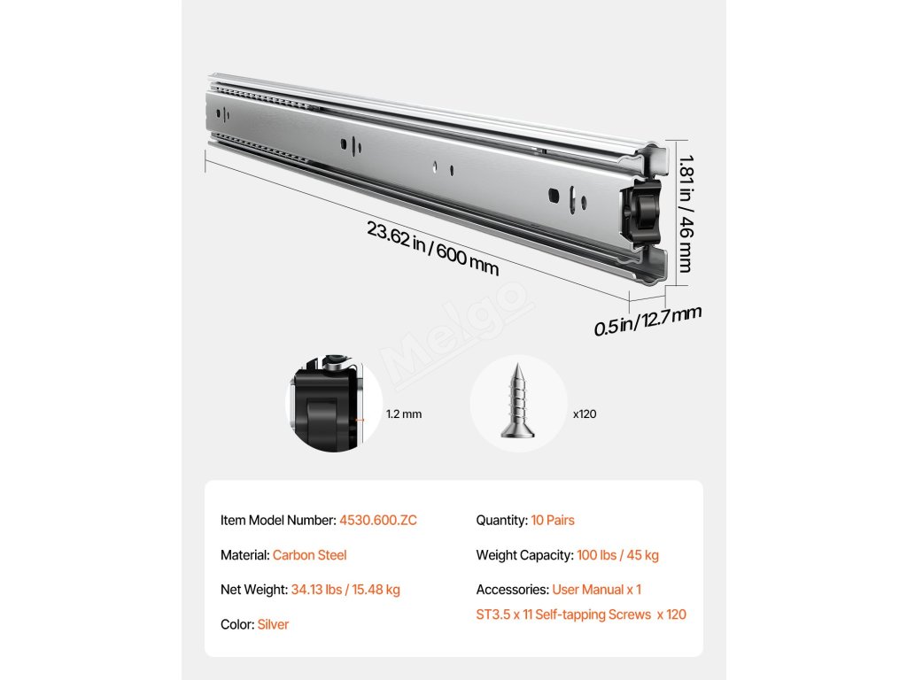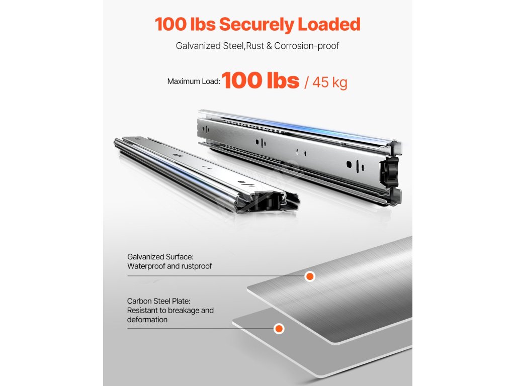 Zásuvkové kolejnice 24 inch, 10 párů, plné vysunutí, nosnost 100 LB