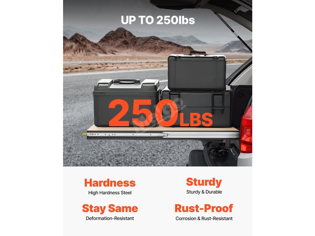 Tento výsuv zásuvek s nosností 250 liber je vyroben z vysoce kvalitní oceli, je odolný proti korozi a rzi a je konstruován tak, aby vydržel a splnil všechny vaše požadavky na nosnost.