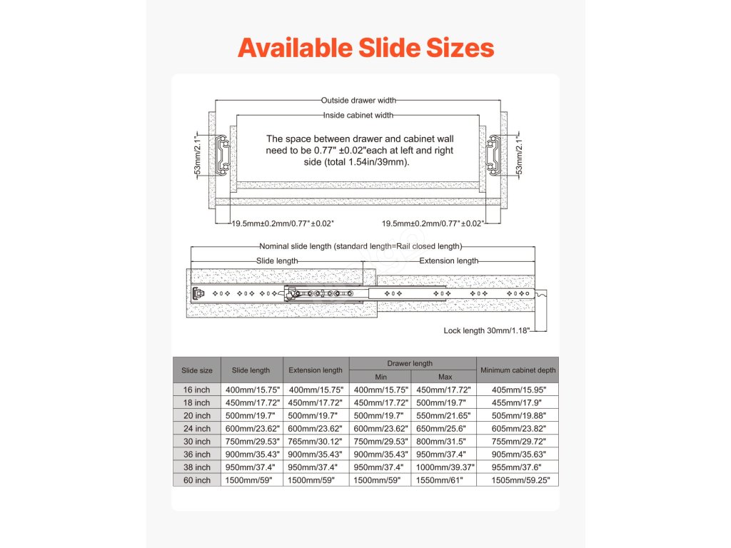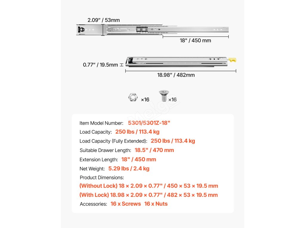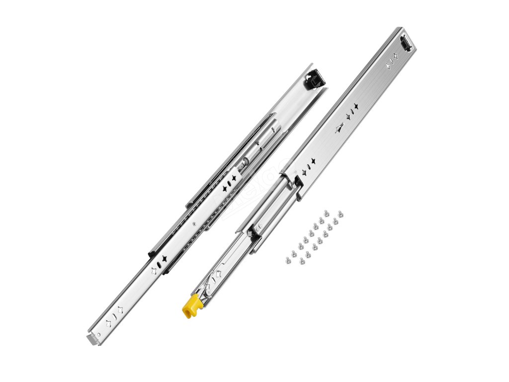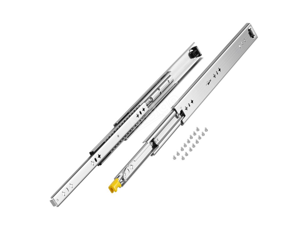 Tyto zásuvkové kolejnice vyrobené z vysoce kvalitní oceli mají vysokou tvrdost, velkou stabilitu a odolnost. Pracují se správným uložením a nízkou hlučností. Jsou dodávány s podrobnými vodítky a praktickými šrouby. Jsou ideální pro ukládání do skříní, průmyslových zásuvek, komerčních zařízení, upravených vozidel atd.