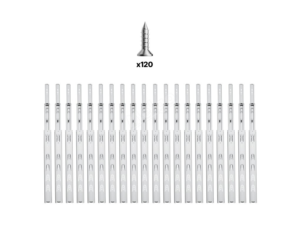 Tyto nástavce s vynikající nosností 100 kg zaručují spolehlivé skladování. Jsou vyrobeny z 1,2 mm silné pozinkované oceli, mají hladký a tichý chod, plné třístupňové vysouvání a klouzání bez námahy, takže nabízejí dokonalou kombinaci vynikající kvality a snadného používání.