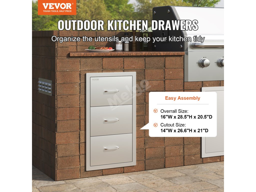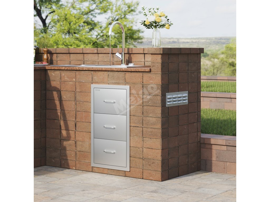 Zásuvky pro venkovní kuchyni trojité nerez 16"×28.5"×20.5" s úchytem
