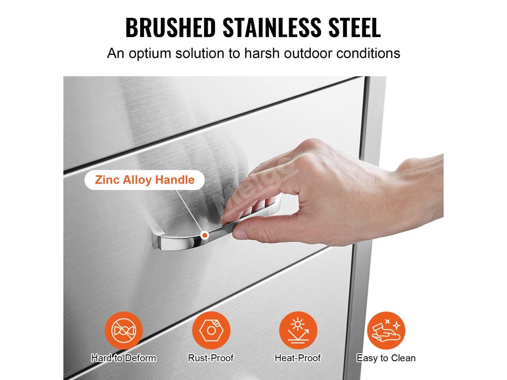 Zásuvka venkovní kuchyně je vyrobena ze zesílené nerezové oceli s vysokou odolností proti korozi a rzi. Lze ji dobře čistit, aniž by zanechávala stopy nebo šmouhy.