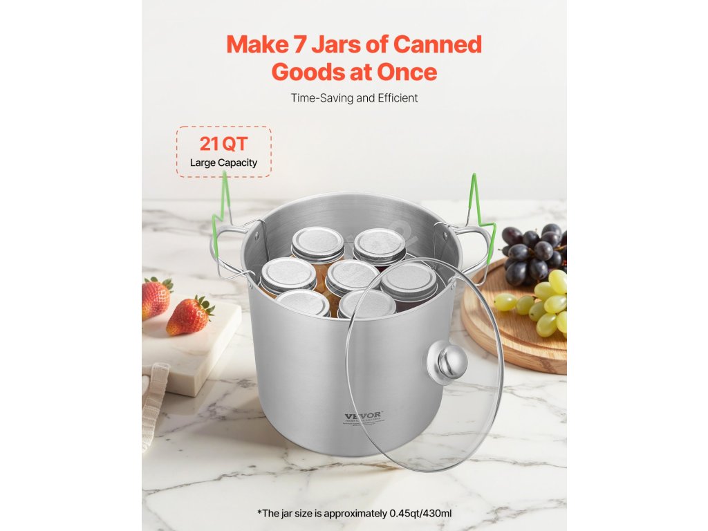 Velkokapacitní zavařovací hrnec je ideální nejen pro domácí zavařování, ale také pro přípravu polévek, dušených pokrmů nebo vaření velkých dávek potravin pro různé rodinné potřeby. Ať už jste začátečník nebo zkušený domácí kuchař, je to skvělá volba pro každého.