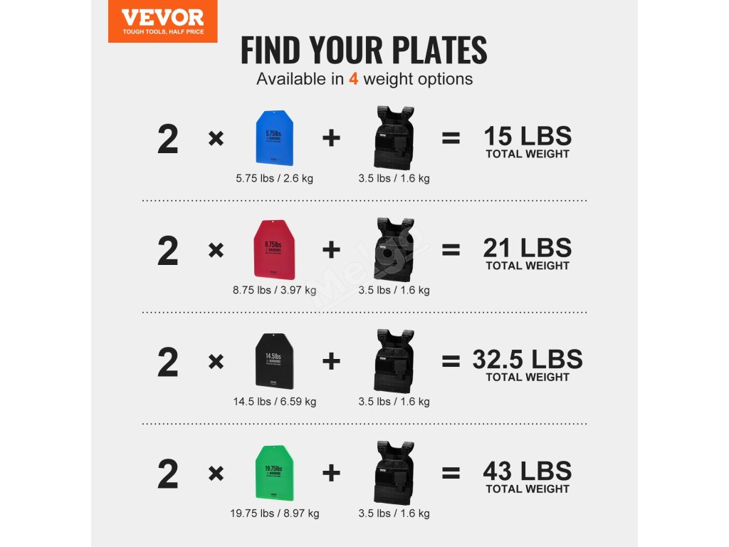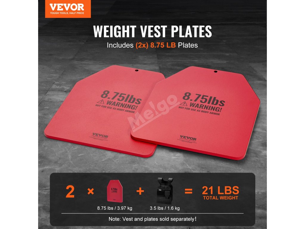 Zlepšete svou fitness rutinu pomocí naší sady dvou zátěžových desek s váhou 8,75 lb. Upozornění: vesta se prodává samostatně, což vám umožní přizpůsobit si vybavení.