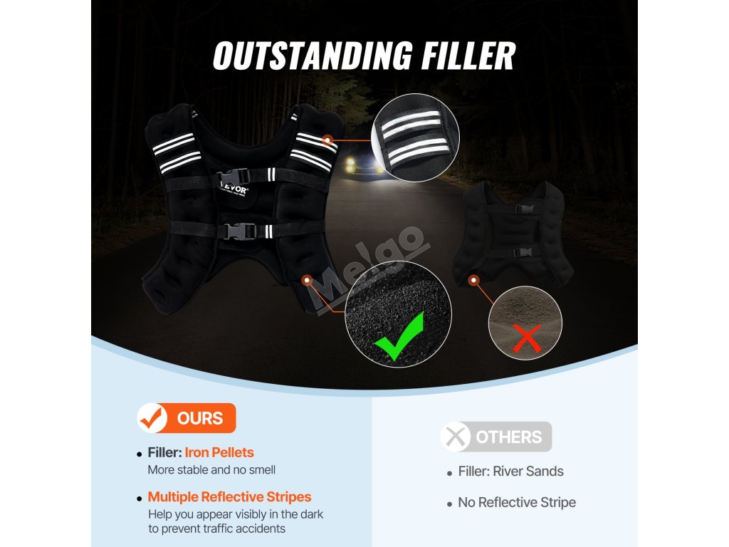 Naše reflexní lemy na zátěžové vestě odrážejí v noci světlo a zajišťují viditelnost a bezpečnost, ať už běháte nebo trénujete venku.