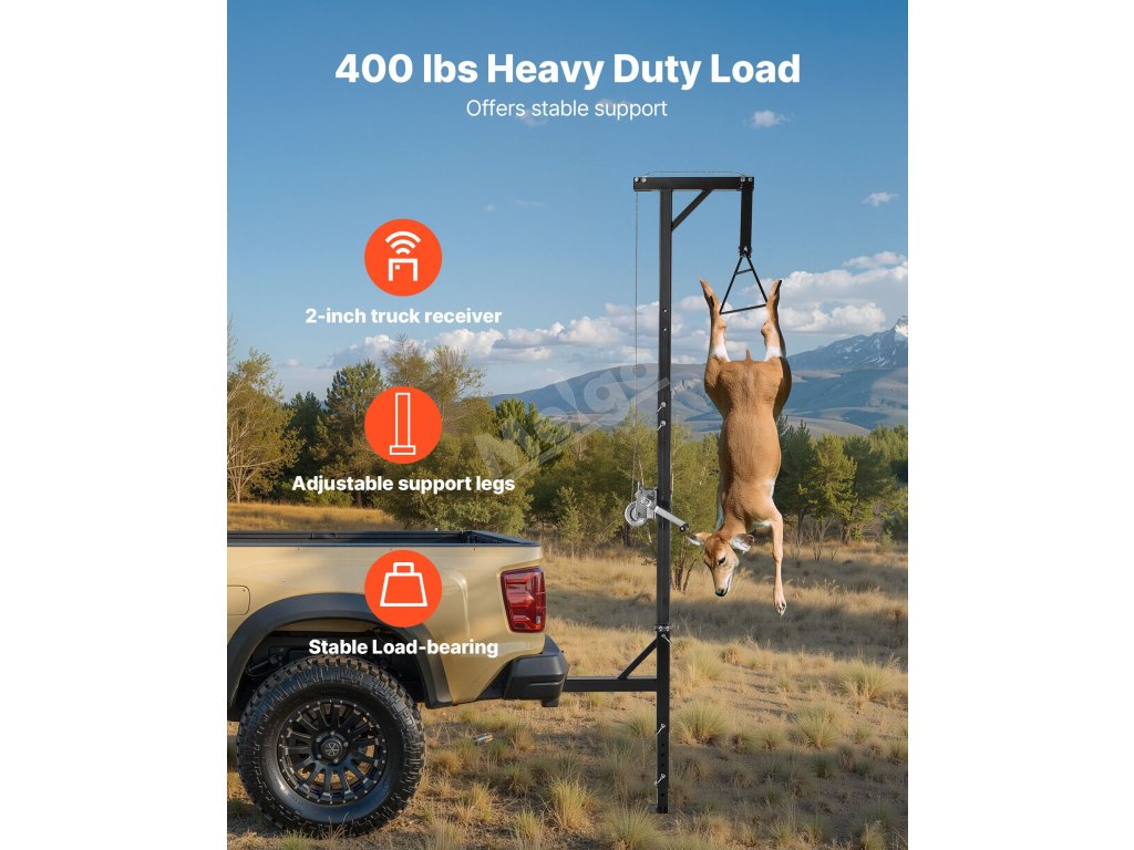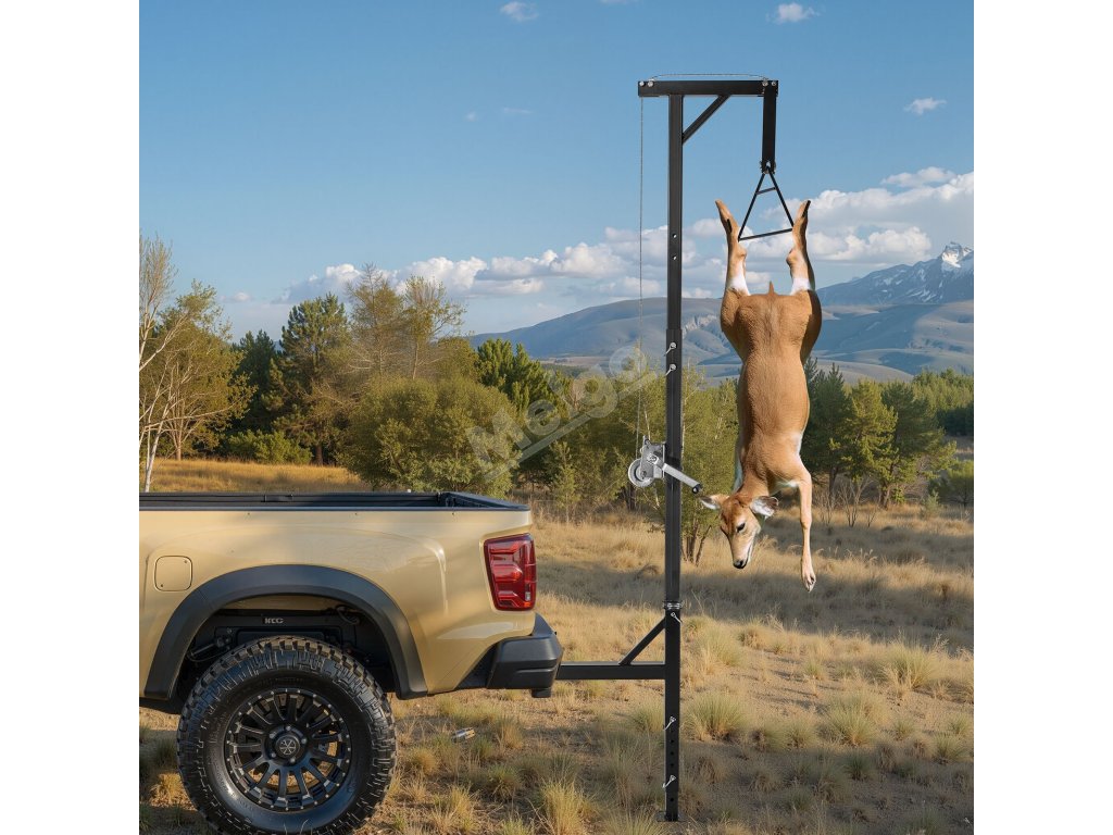 Závěs na jelena je ideální pro lov, pomáhá při zvedání, čištění a stahování kůže zvěře. Je vhodný také pro použití na farmách při zavěšování krmiva a dalších těžkých zvedacích pracích.