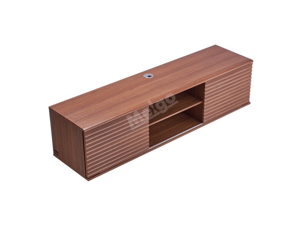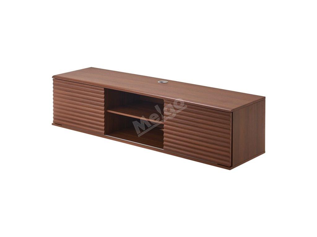 Zavěsná police na televizor 60" 2 úrovně, posuvná dvířka, ořech