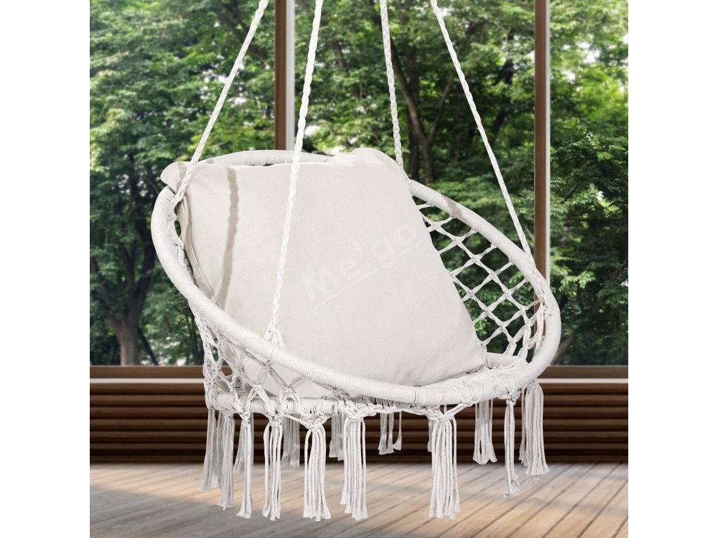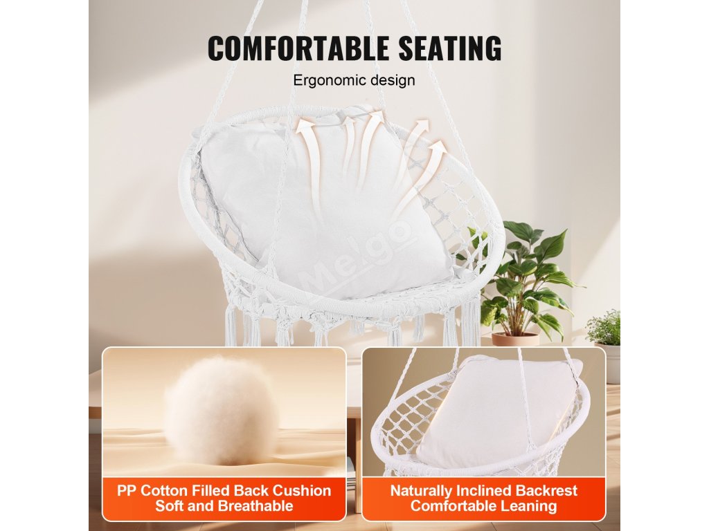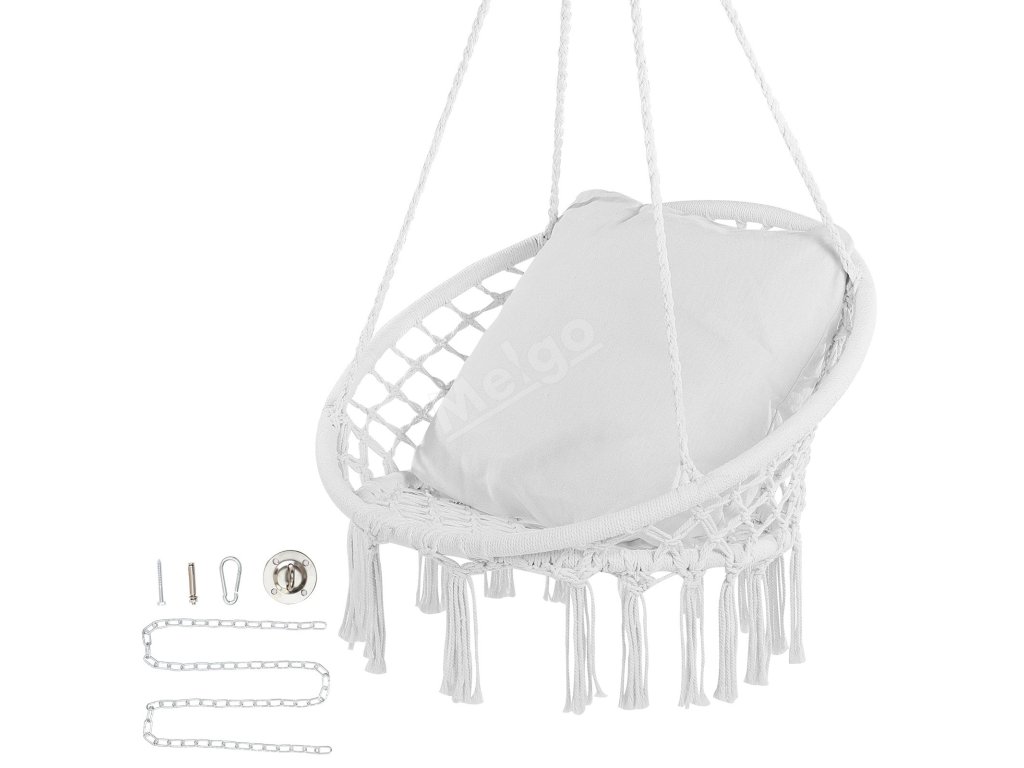 Závěsné macramé houpací křeslo 330 lbs s polštářem a montáží, bílé