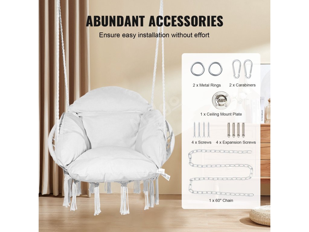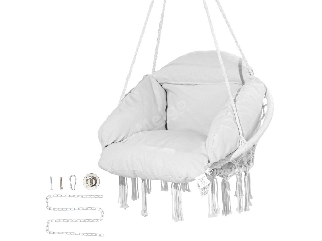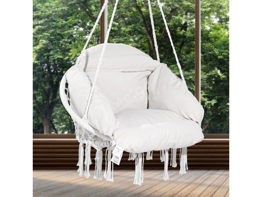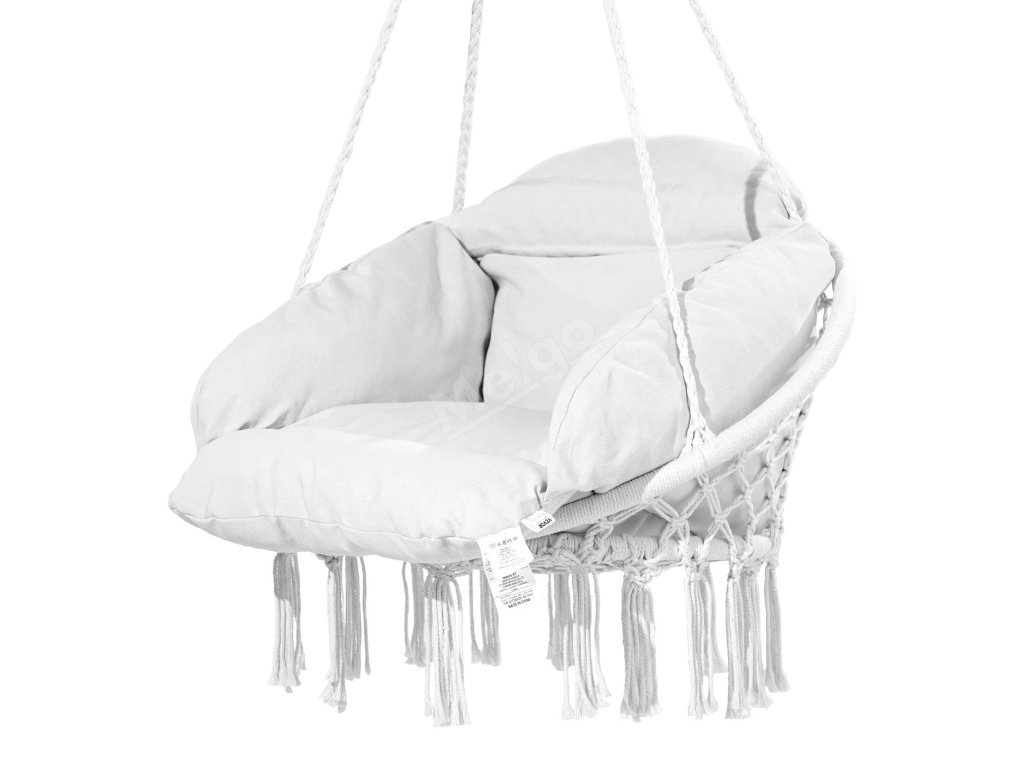 Zavěsné macramé křeslo s polštářem, bavlna, nosnost 264 lbs, bílé