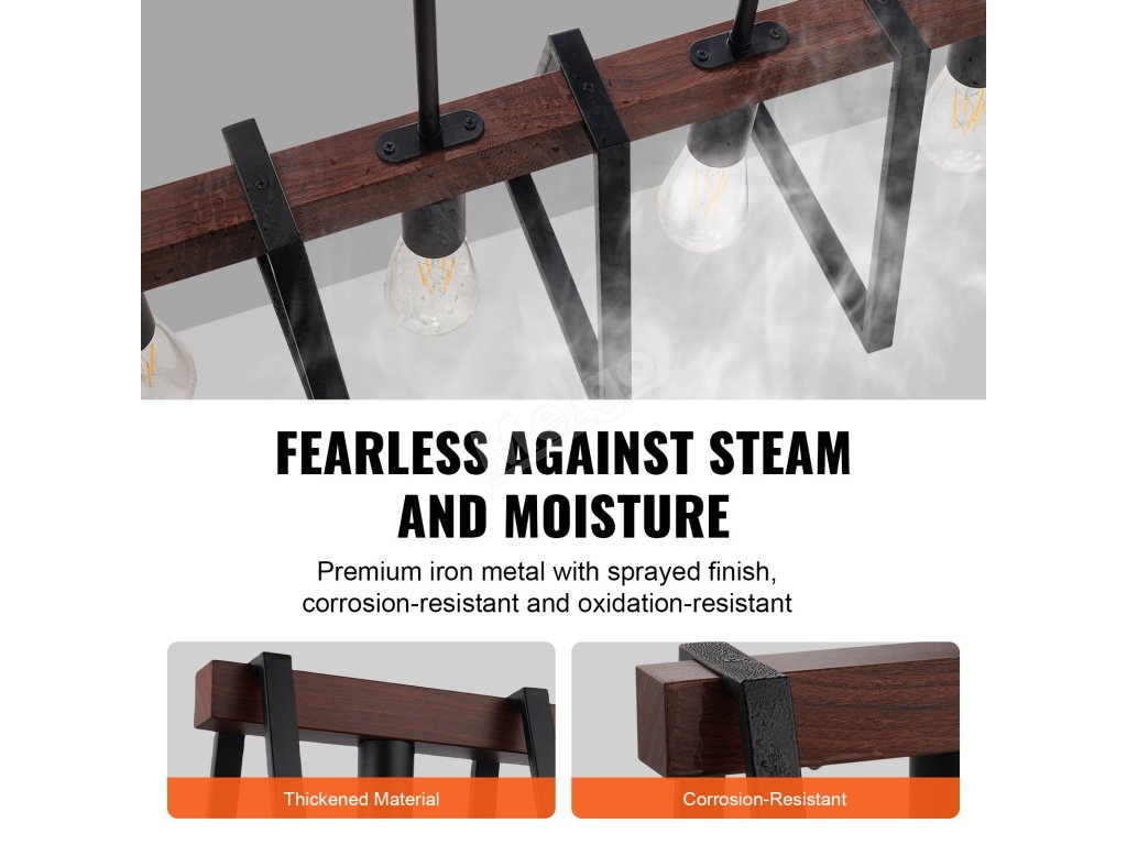 Naše svítidlo do jídelny se dodává s 8 tyčemi (2 x 6 palců a 6 x 12 palců), takže můžete snadno nastavit výšku svítidla na jakýkoli strop. Každá světelná hlava podporuje až 60 W a všechny typy žárovek E27 (LED, halogenové, žárovky a CFL).