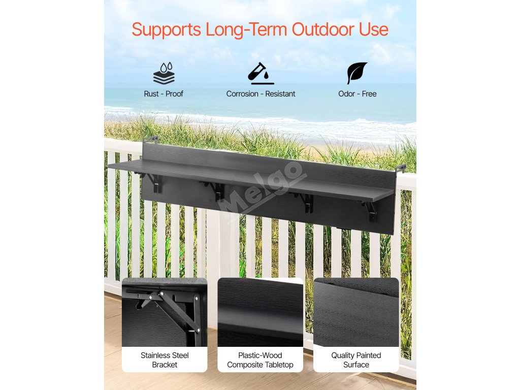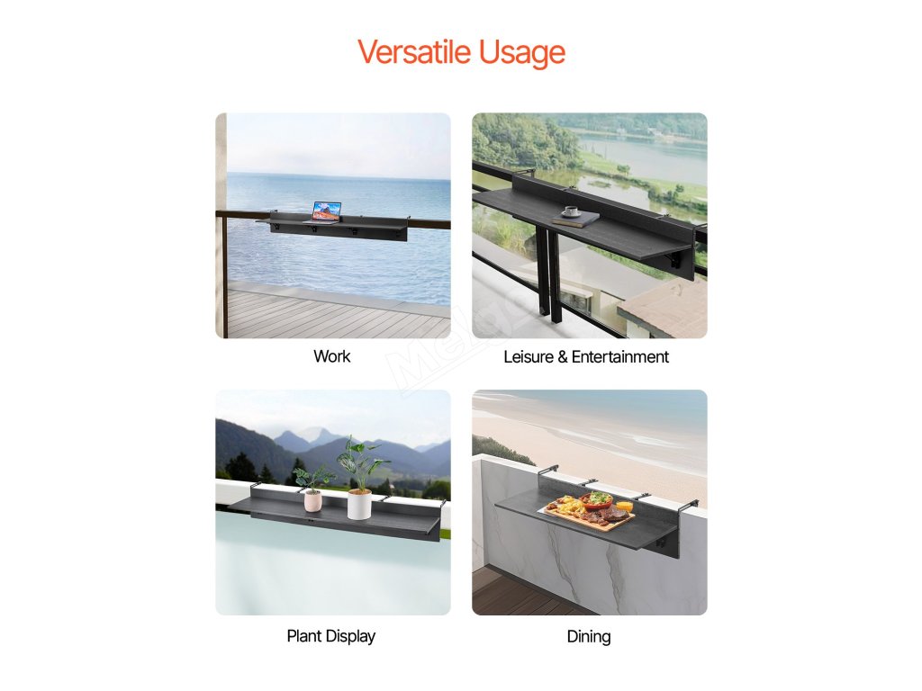 Tento balkonový závěsný stolek je ideální pro různé venkovní aktivity. Ať už stolujete, pracujete, odpočíváte nebo vystavujete rostliny, přizpůsobí se všem vašim potřebám a zajistí, že bude vždy používán a nikdy nezůstane nečinný.
