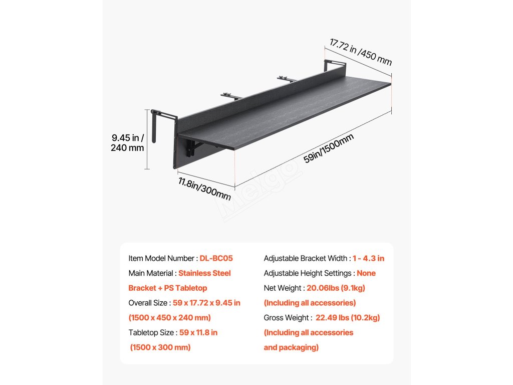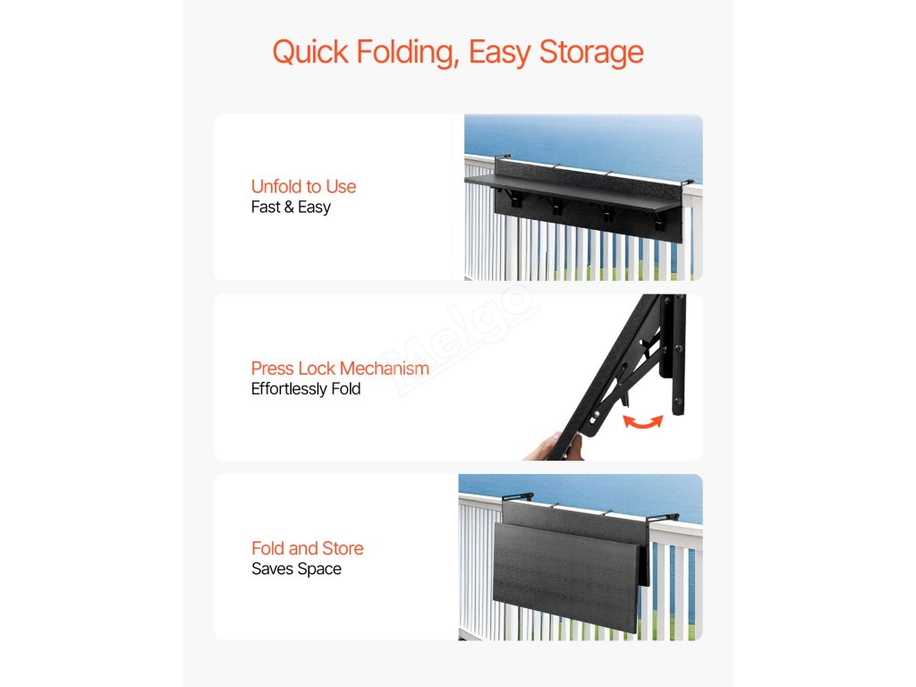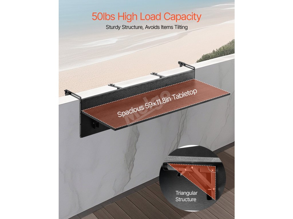 Závěsný balkonový skládací stolek 12×59 in, pro zábradlí 1"–5.9"