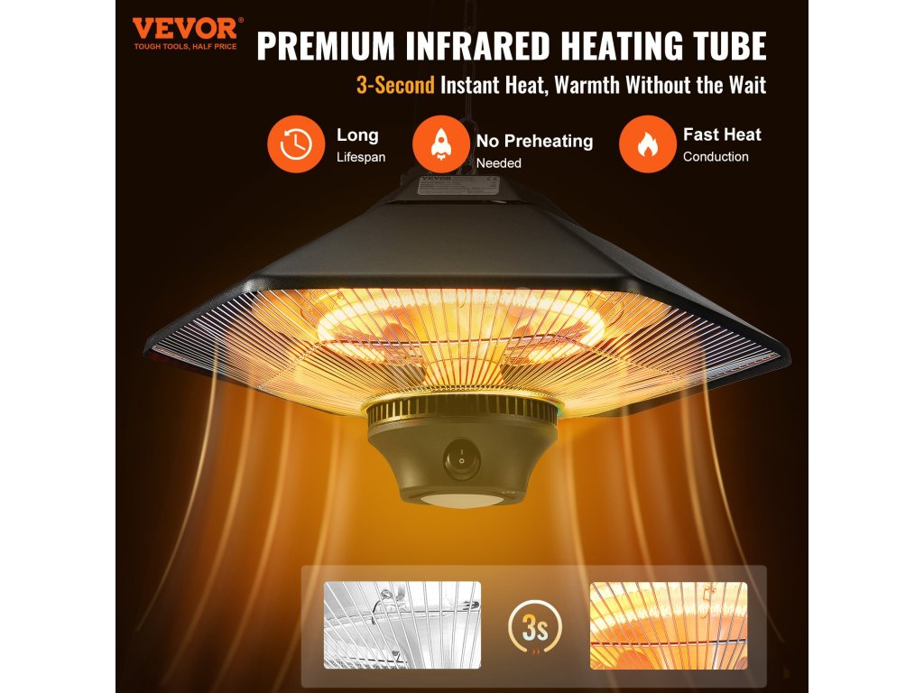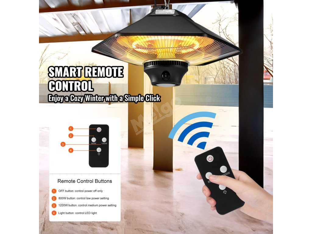 Tento infrazářič využívá vysoce kvalitní topné trubice, které poskytují rychlé teplo bez nutnosti předehřívání. Má několik nastavitelných parametrů pro větší pohodlí. Je ideální pro domácnosti, dvory, garáže nebo terasy, kde vytvoří útulné prostředí pro vaše venkovní aktivity.