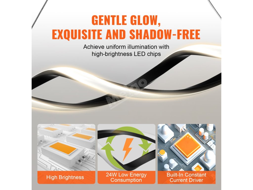Závěsný led lustr 24W, stmívatelný, dálk. ovladač, 3000–6000K