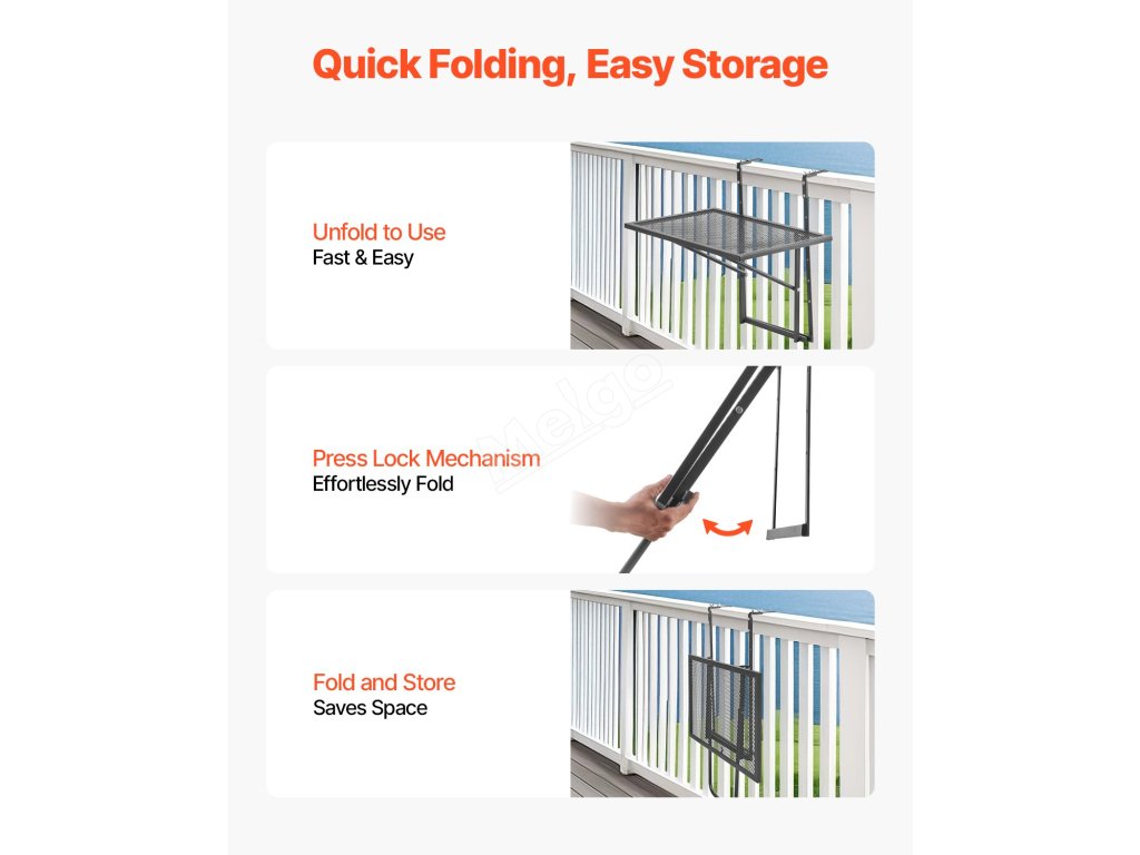 Závěsný stolek na zábradlí 19×24 in kovový skládací 5 poloh, na 1"-4.7"
