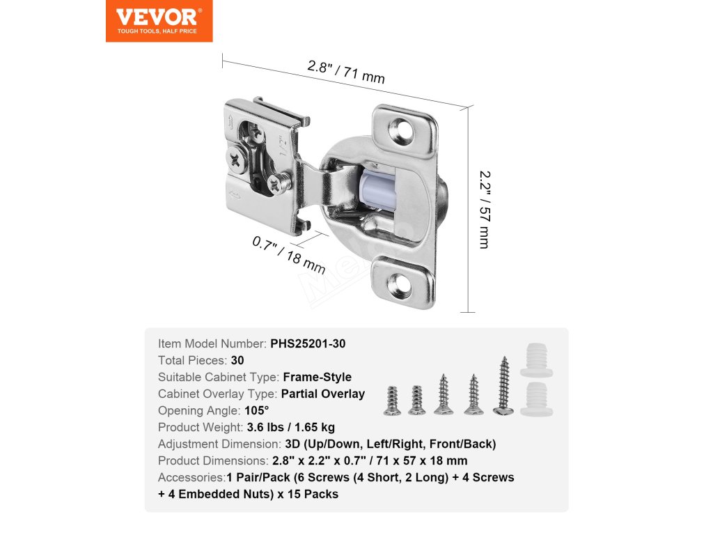 Závěsy kuchyňských dvířek 30 ks částečné překrytí 105° tlumené