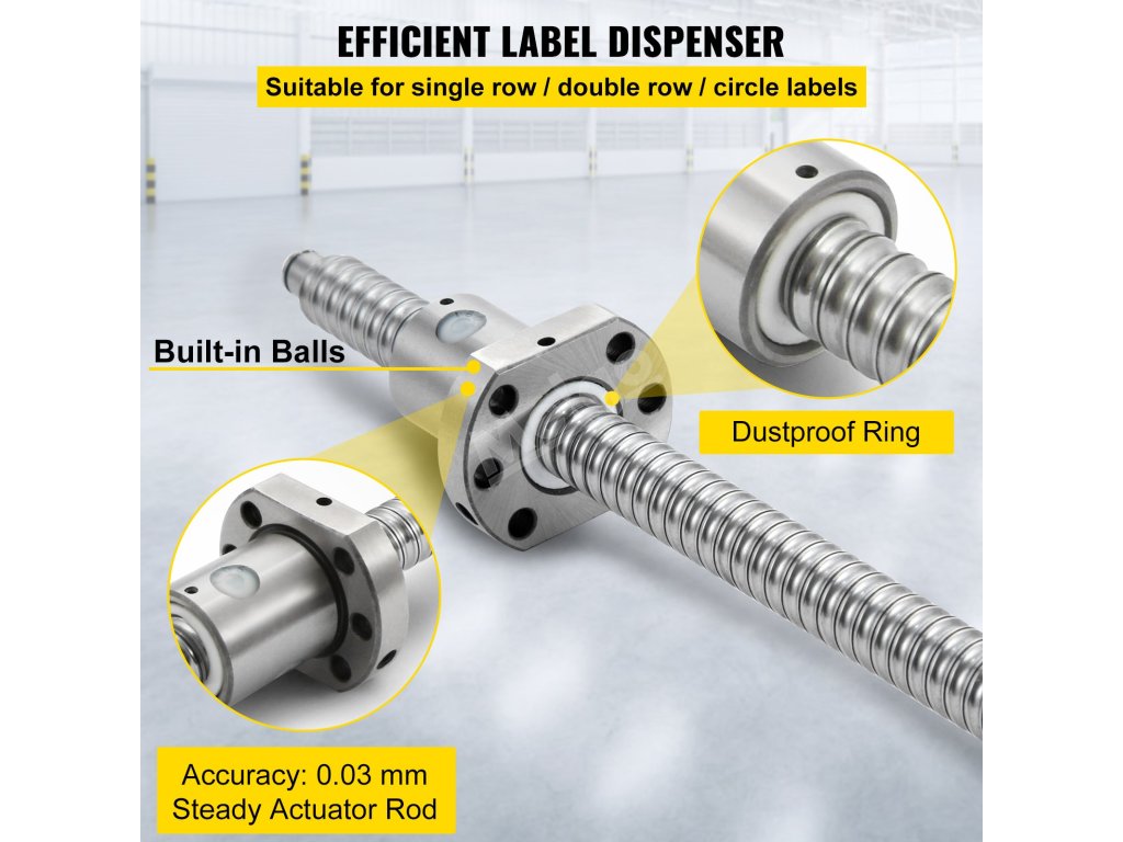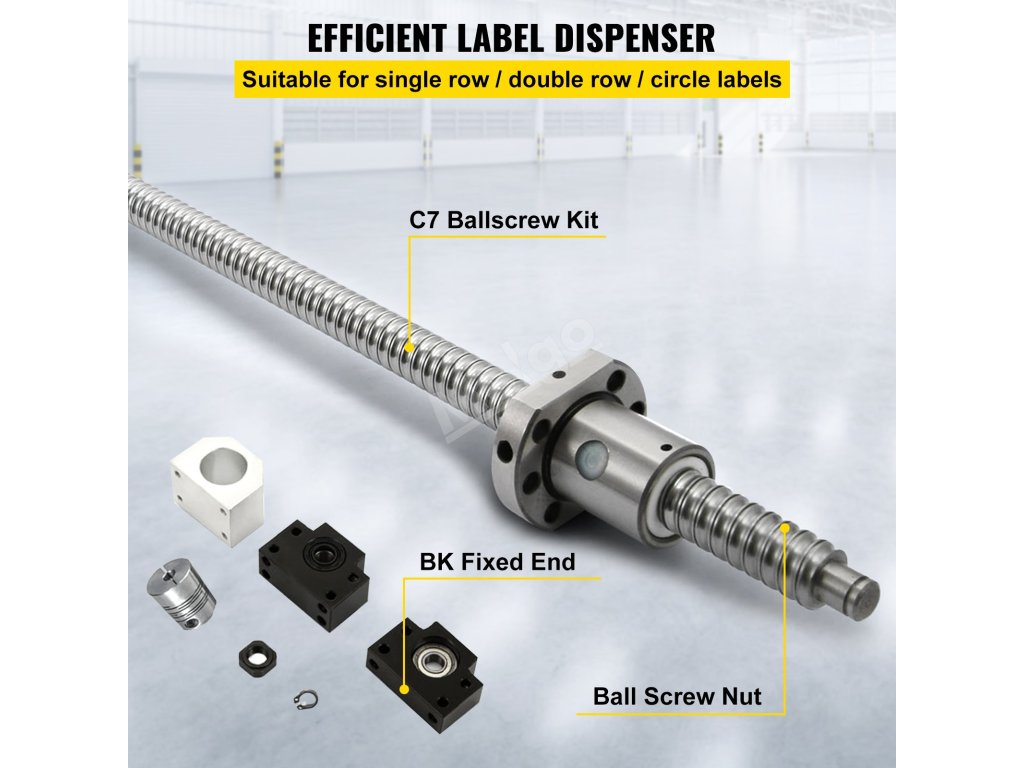 Sada kuličkového šroubu se skládá z hřídele, matice a bočních podpěr BK12/BF12. Kuličkový šroub je vyroben z vysoce kvalitní oceli, která odolává opotřebení a splňuje vysoké požadavky na nosnost.