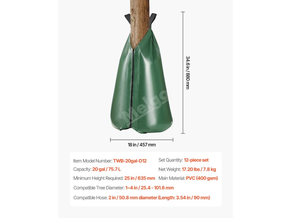 Tento zavlažovací vak na stromy je ideální pro nové výsadby nebo stromy citlivé na sucho v zahradách a sadech a zajišťuje účinné a stabilní zavlažování. Velký vak o objemu 20 galonů (75,7 l) pomalu uvolňuje vodu po dobu 5 až 9 hodin, čímž hloubkově hydratuje kořeny stromů a podporuje jejich zdravý růst.