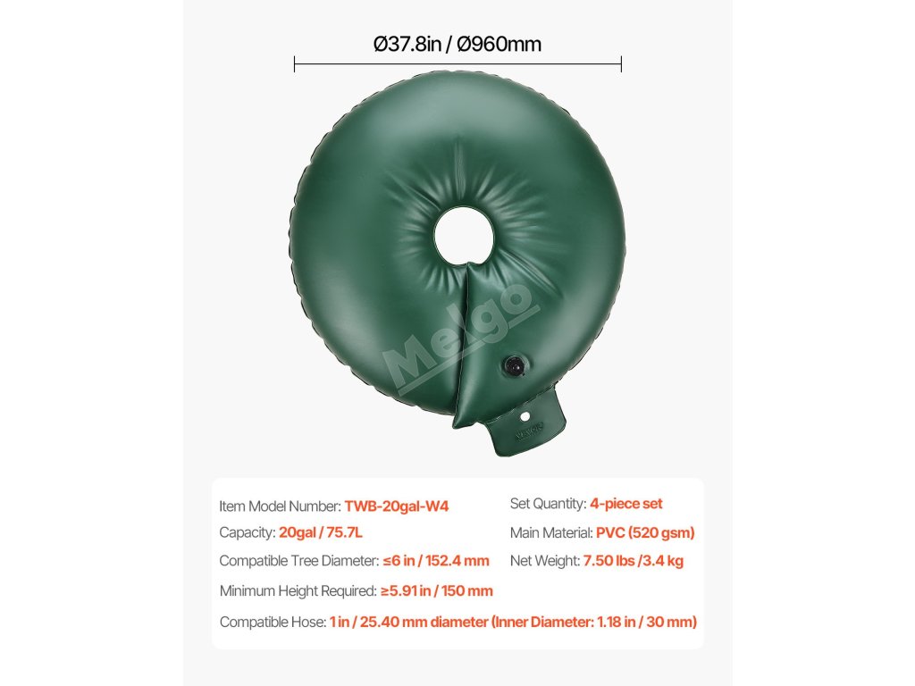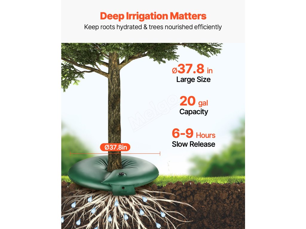 Tento zavlažovací kroužek zajišťuje spolehlivou hydrataci nově vysazených stromů nebo stromů citlivých na sucho. S kapacitou 20 galonů (75,7 l) uvolňuje vodu pomalu po dobu 6 až 9 hodin a vyživuje kořeny stromů. Snižuje potřebu častého ručního zalévání, čímž šetří vodu, čas, námahu i peníze.