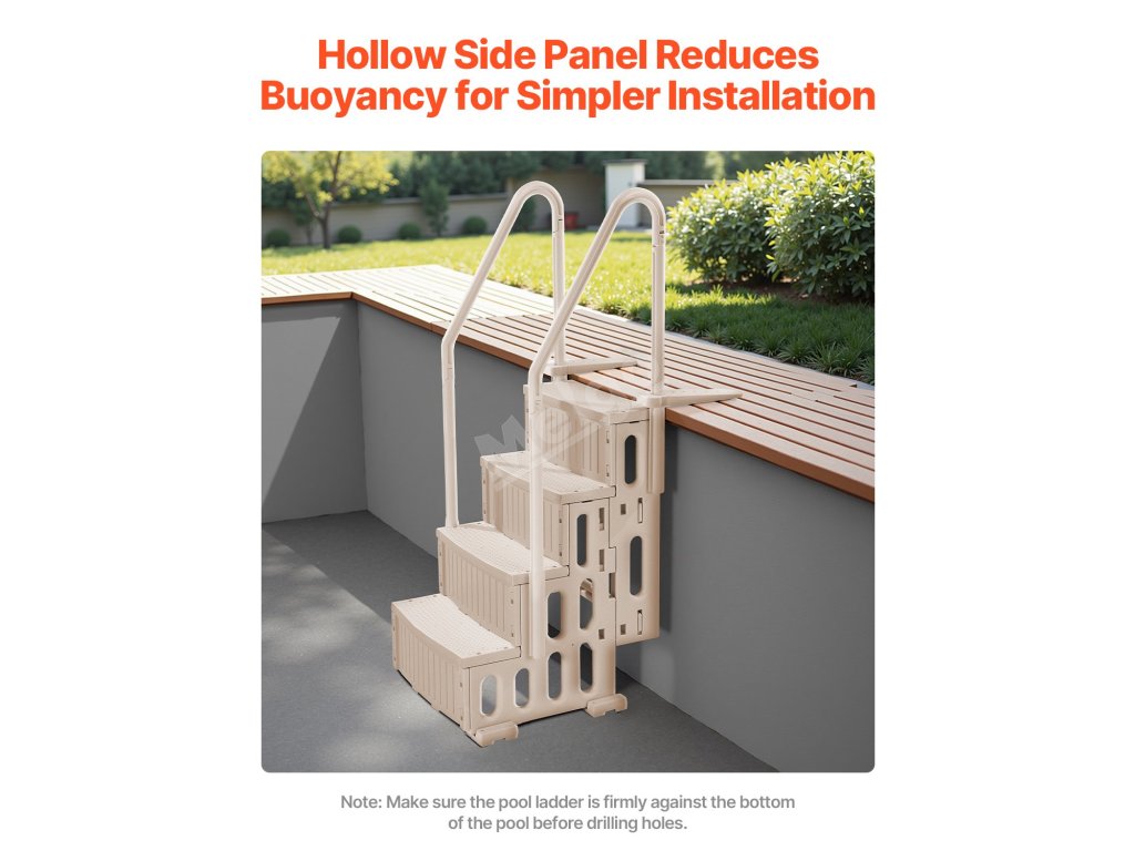 Tento žebřík je vybaven výškově nastavitelnými panely a předvrtanými otvory, takže jeho instalace je rychlá a snadná. Stačí postupovat podle návodu, můžete jej do bazénu nainstalovat jako profesionál a začít jej ihned používat!