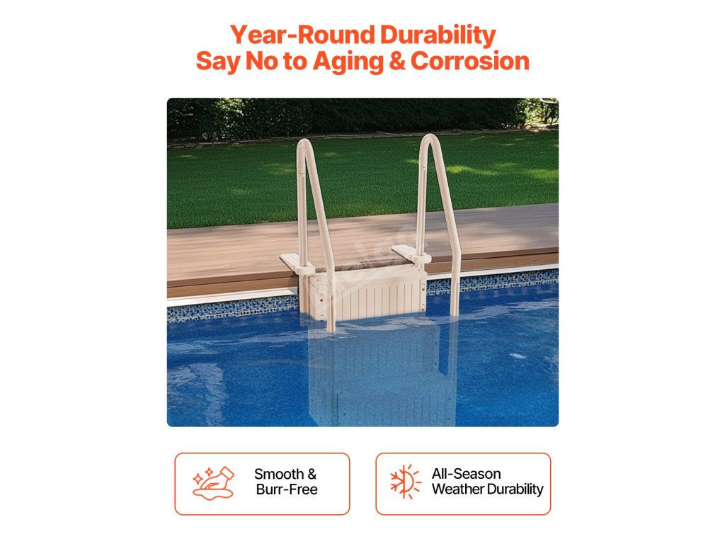 Tyto schůdky do bazénu jsou vyrobeny z odolného PE materiálu a mají protiskluzové strukturované nášlapy, extra silné stupně a robustní madla, která zajišťují bezpečný vstup do bazénu a výstup z něj.