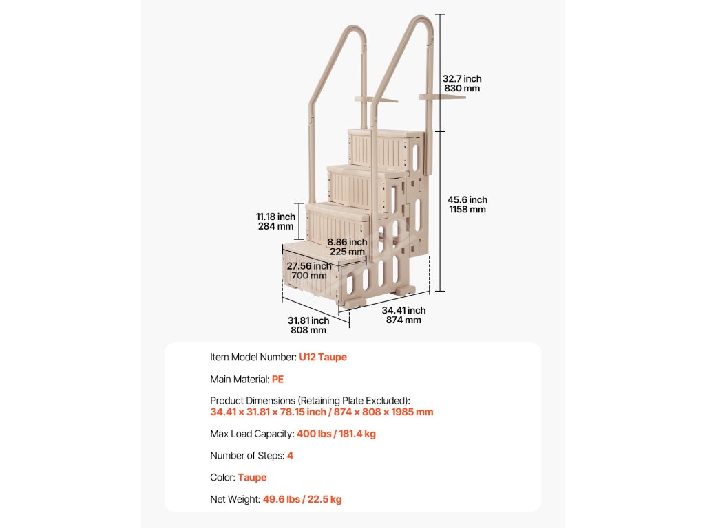 Tyto bazénové schůdky lze snadno instalovat u venkovního bazénu, krytého bazénu, otevřeného bazénu nebo aquaparku. Ať už máte betonovou, dřevěnou nebo cihlovou podlahu, tento žebřík se instaluje bezpečně, spolehlivě a bez námahy!