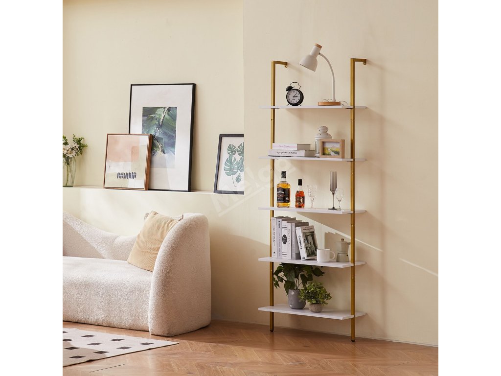 Žebříková nástěnná police, 5 polic, 24×11.8in, kovový rám, otevřená