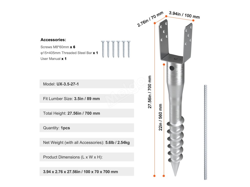 Zemní kotevní kolík u-tvar 3.94×2.76×27.56 in se 6 šrouby a výztuží