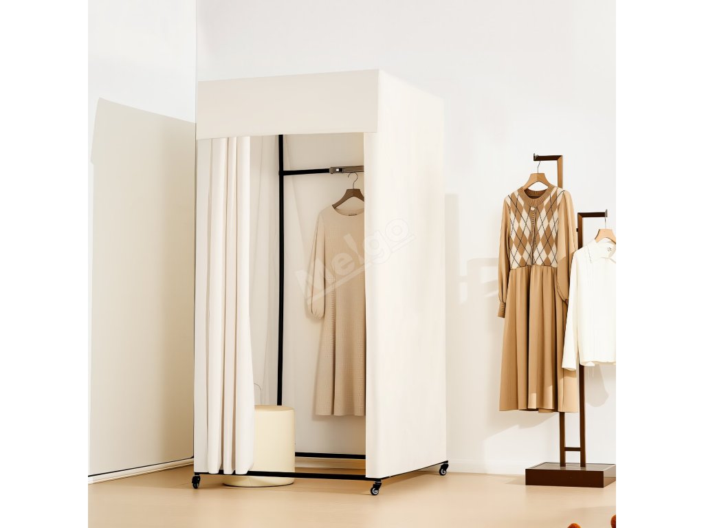 Zkušební kabina s kolečky, tlusté závěsy a kovový hák 99×99×204.5 cm