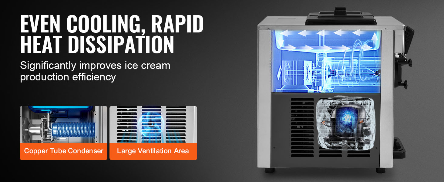 Tento stolní zmrzlinovač vyrobí zmrzlinu za pouhých 14 minut. S výkonným kompresorem, který pracuje tiše s hlučností nižší než 66 dB. Dokáže nepřetržitě dodávat 8 až 10 zmrzlinových kuliček a dosáhnout až 18 l/4,8 gal- 28 l/7,4 gal zmrzliny za hodinu pro dokonalou zmrzlinu.