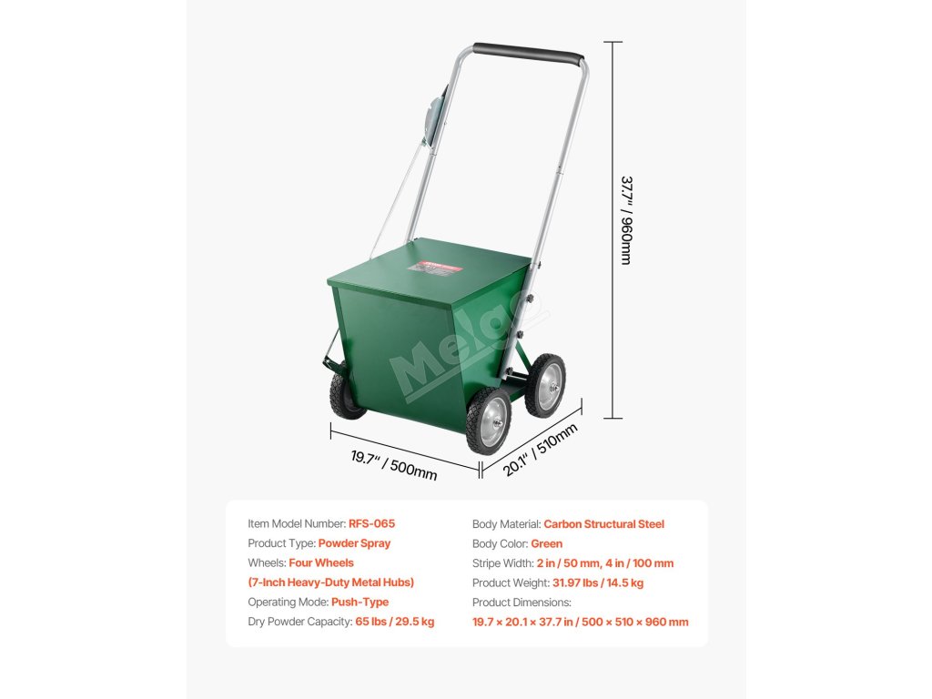 Tento suchý stírací fix pojme až 65 liber suchého prášku, takže je ideální pro různé projekty. Zajišťuje jasné a přesné čáry, snadno se používá a poskytuje vynikající uživatelský komfort. Nejlepší volba pro stroje na značení sportovišť.